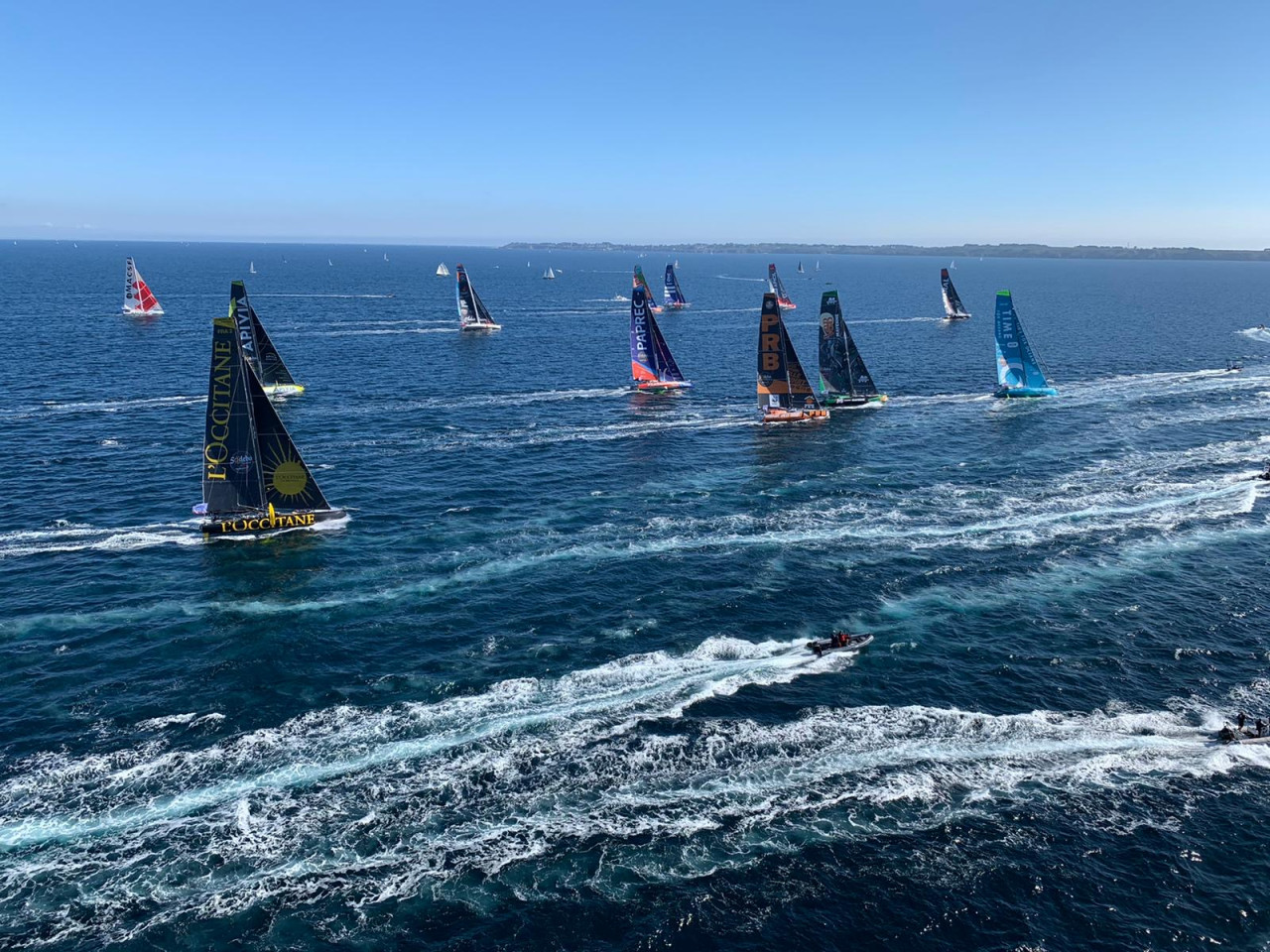 Finally alone! The 17 competing IMOCAs set sail from Lorient this afternoon on a long triangular sprint in the middle of the Bay of Biscay. Leading the way, Charal is battling it out with ARKÉA PAPREC and L’Occitane en Provence, with the foilers already flying along towards the first mark some 143 miles ahead of their bows.
