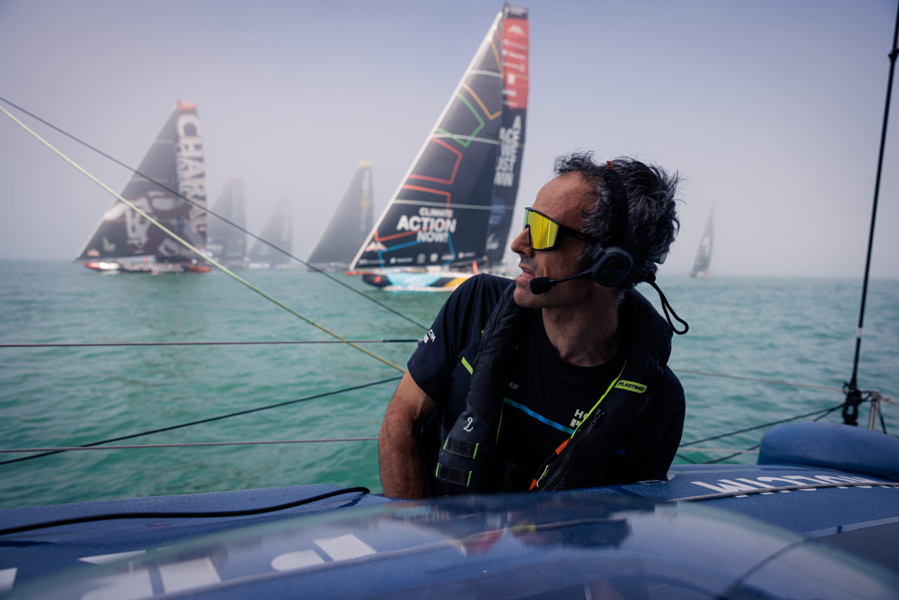 As soon as the line was crossed, the IMOCA fleet moved forward slowly in a muffled atmosphere, the fog adding to the surreal feel of the start. Carried by a light breeze of 4 to 6 knots, they are still sailing in a deceptively calm setting, with tension running high: each sailor knows that the slightest misstep in positioning could leave their boat at the mercy of the current and cost them precious time.