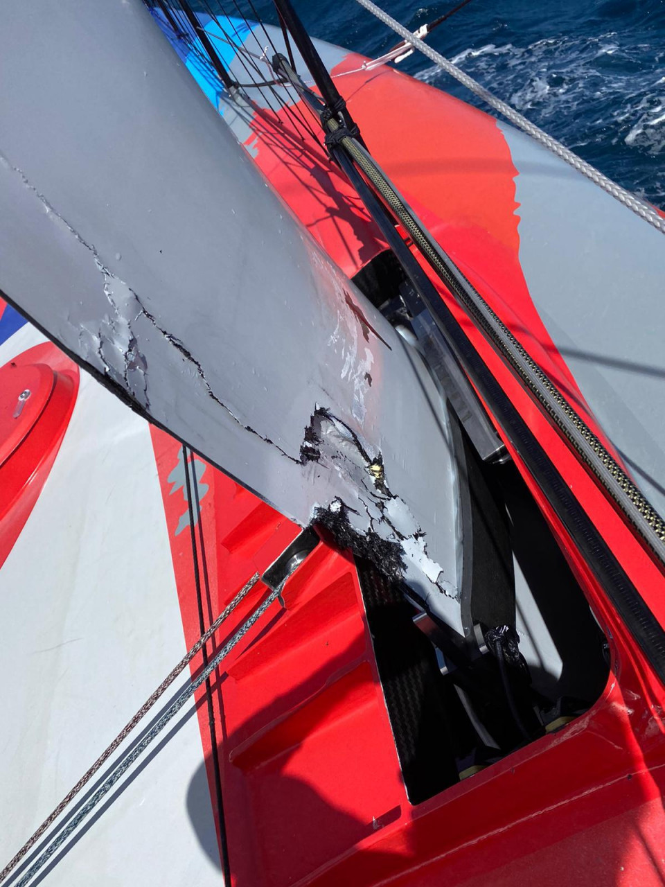 At 0820hrs UTC this morning, ARKEA PAPREC hit an unidentified floating object. The collision caused serious damage to the starboard foil. The skipper is coping with the situation with his shore team. Skipper Sébastien simon was not injured.