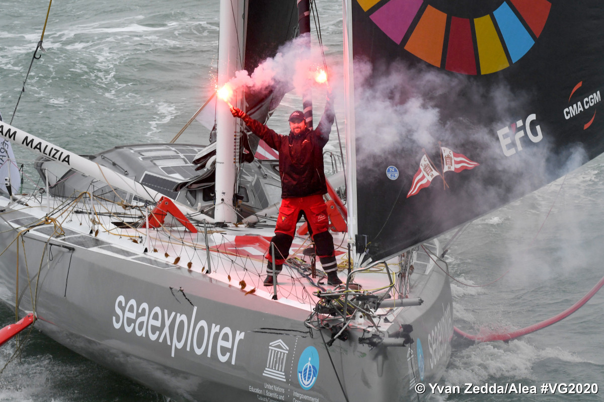 German skipper Boris Herrmann (Seaexplorer-Yacht Club de Monaco) crossed the finish line of the Vendée Globe off Les Sables d’Olonne this morning at 10:19:45hrs UTC to place in a provisional fourth place. He must wait until this evening for Jean Le Cam to finish to see if the veteran 61 year old will displace him because of his 16 hrs and 15 mins of time compensation.