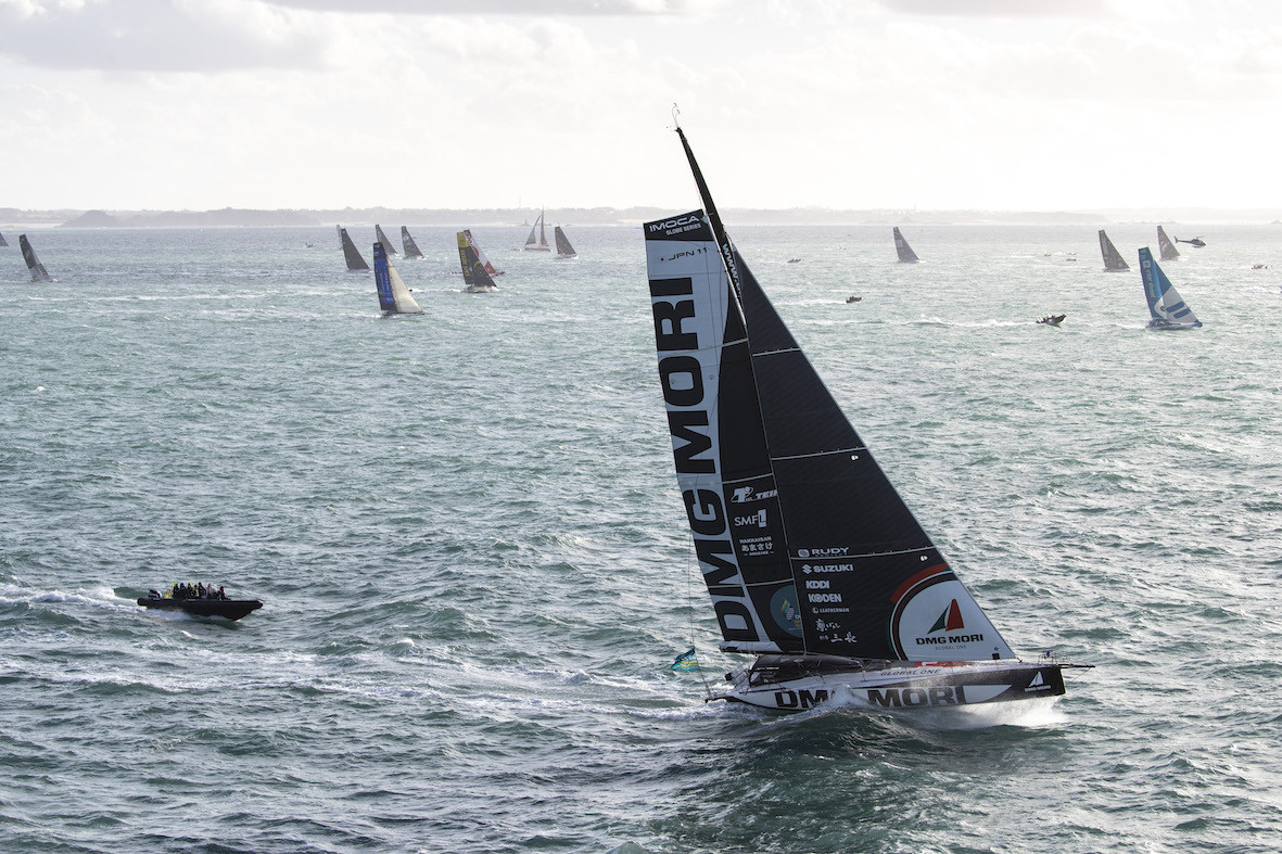 Sadly “trouble” has been encountered by Oliver Heer, in his first big race on Oliver Heer Ocean Racing, and Kojiro Shiraishi on DMG Mori Global One who collided as they were approaching the gate off Cape Fréhel. Both skippers returned to St Malo where Shiraishi announced his retirement from the race while Heer’s team are working hard to repair his bowsprit and bow to enable him to re-start the race in the next day or so.