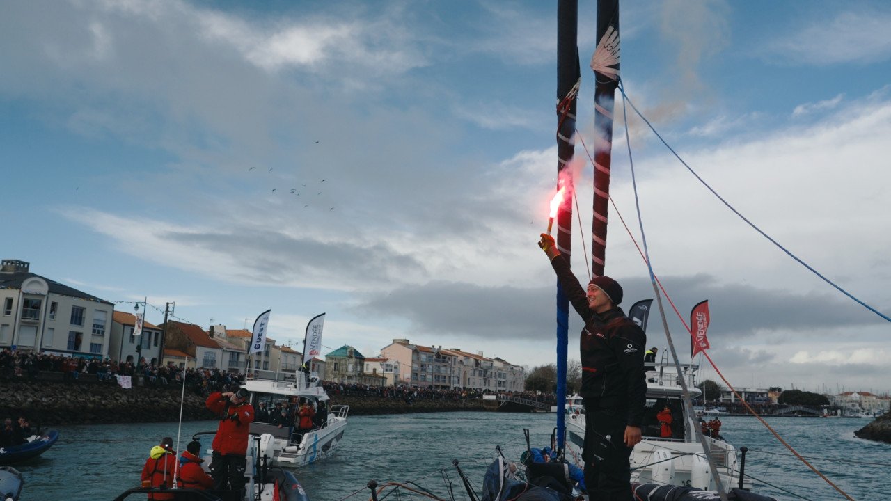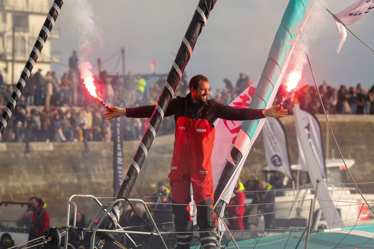 Just a fraction under 25 minutes behind her in ninth place, Great Britain's Sam Goodchild became the second non-French or “international skipper” to complete the race, when he arrived at the finish off Les Sables d’Olonne.