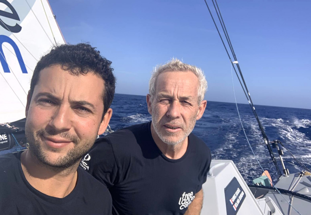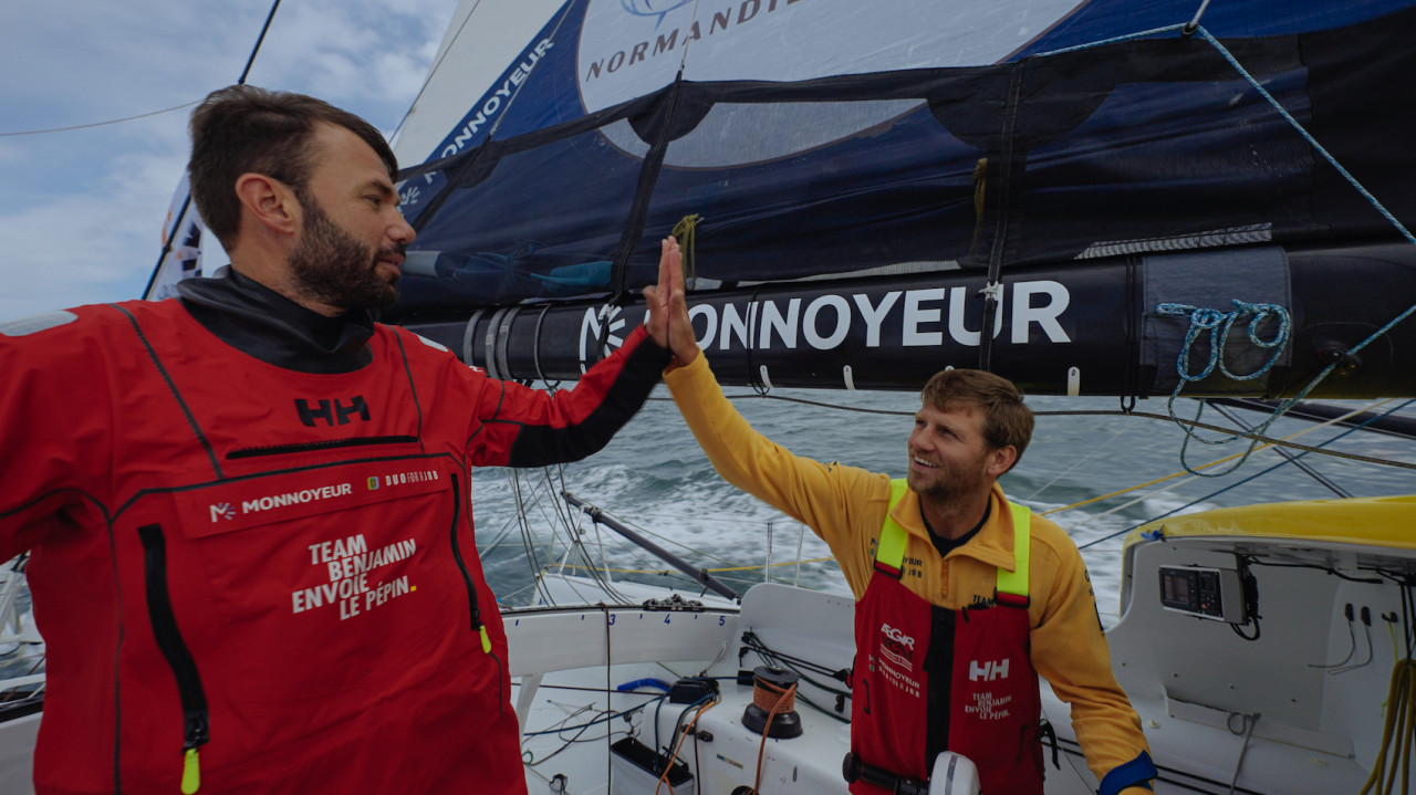 The pairing on Monnoyeur-Duo For a Job are enjoying a great racing partnership. “Life on board with Benjamin is very natural, as it has been since the start of the year with him,”explained Le Roy. “We each rely on our respective qualities. I spend more time at the chart table; Benjamin sets the tempo for the manoeuvres. When it comes to setting up, we talk a lot. There’s a bit of tinkering with the boat, but it’s nothing too serious as the boat’s in great shape.”