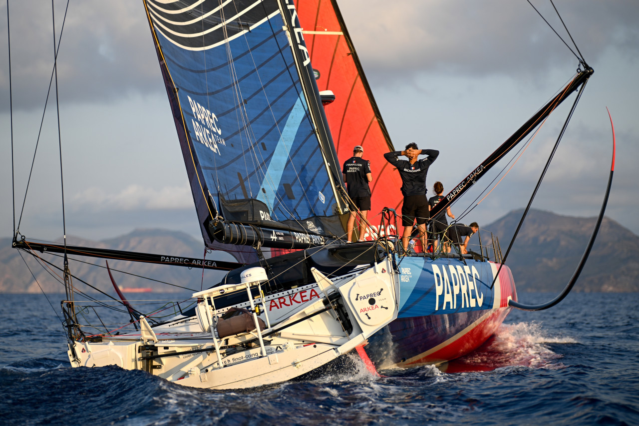 “I’d say around 60% of the race was sailed in heavy downwind conditions,”explained Meilhat. “Those were definitely not the best conditions for us, but we tried to close the gap with the leader. We knew that the race would be decided in the transitions and there were a lot of them. Paprec Arkéa was really fast, but each time the wind shifted we focused on choosing the best position for the new breeze.”