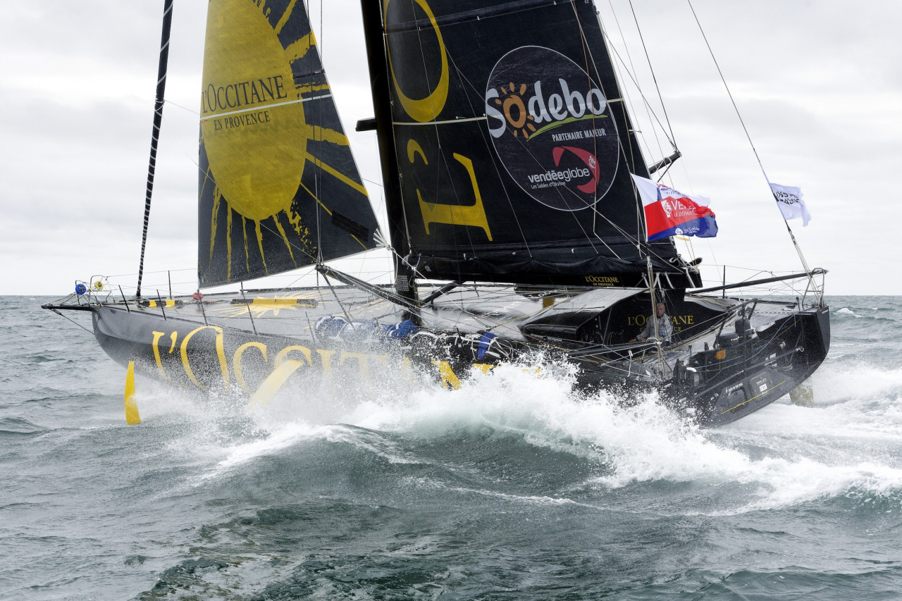 Behind him Armel Tripon reflected on the spectacular start he produced on the brand new L’Occitane en Provence as he led the fleet to the first turning mark – the Institute Pasteur buoy. He said it was a way of saying thank-you to his team for all the work they had put in to get the new boat to the startline. “It was nice for the whole team,” he said, “a way of thanking them for their work and commitment, which enabled me to take the start yesterday.” Tripon added that since that early phase in the race he has dropped back – he is now in seventh place, 21 miles behind the leader – because he is still finding the optimum mode to sail his Sam Manuard-designed IMOCA.