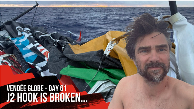 This Friday morning, Boris Herrmann noticed that the hook of his J2 headsail had broken. The sail is safe on deck and the integrity of the mast is not at risk, but unless he can create a new hook system, the Malizia - Seaexplorer skipper will have to manage the race without his most important headsail.