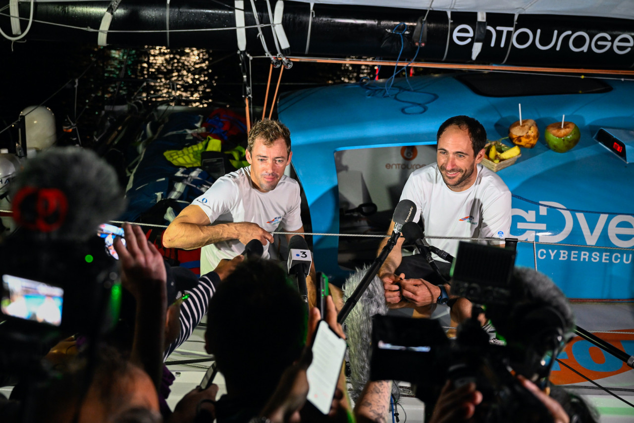 Thomas Ruyant and Morgan Lagravière (For People), winners of the Transat Jacques Vabre
