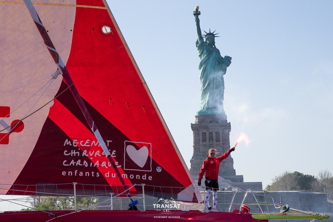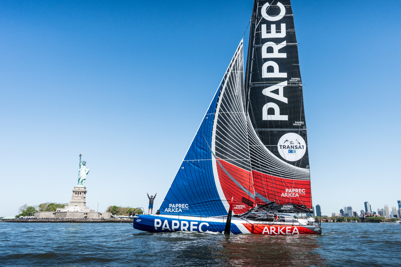 As his red and blue flying machine in the livery of Paprec Arkéa made her way towards New York City under full sail and a cloudless blue sky, her skipper stood on the bow enjoying every moment of one of the most iconic landfalls in world sailing.