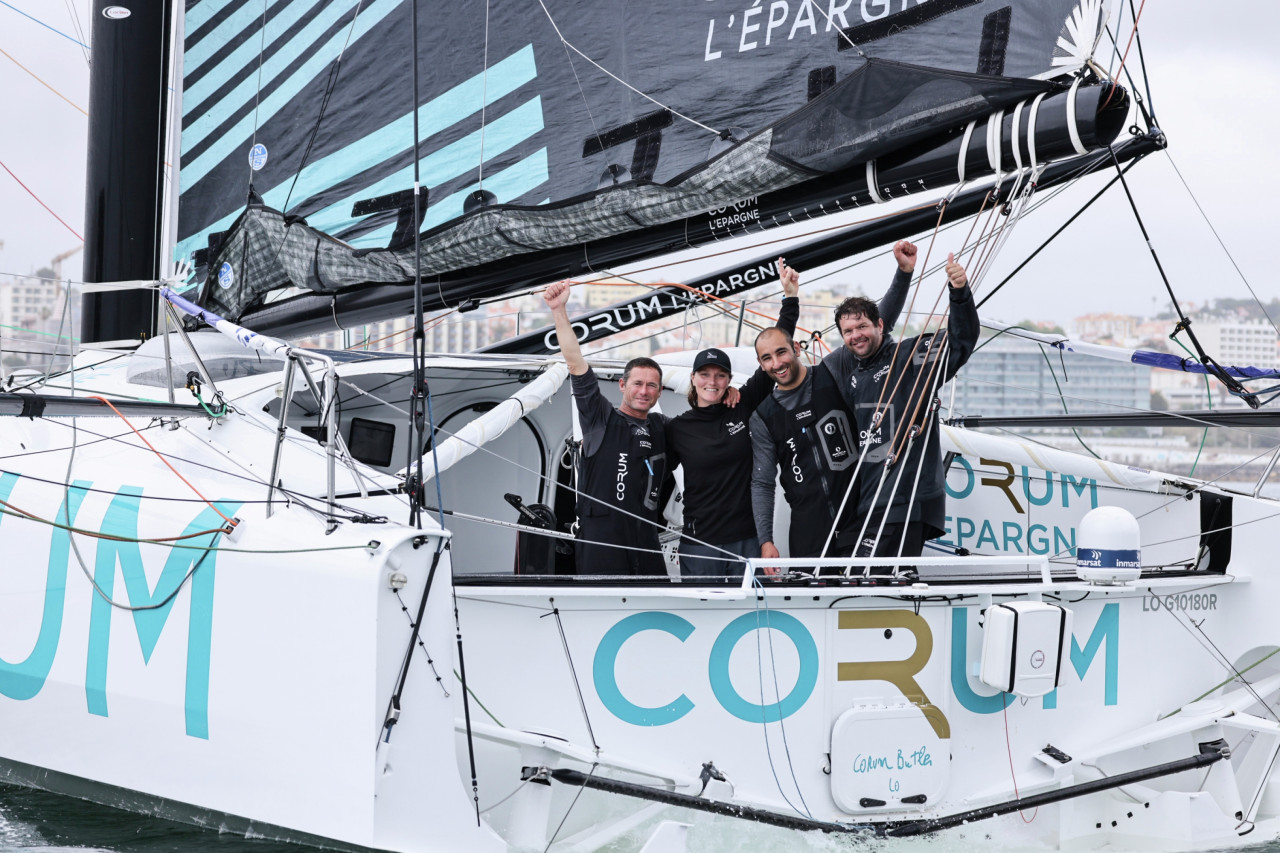 "On peut être super contents. Bon, l’arrivée ici, c’est toujours particulier. Les arrivées à Lisbonne, c’est souvent pas bien d’être en tête… On se fait doubler la politesse à quelques mètres de la ligne. Sinon, je trouve qu’on a super bien navigué. En performance, le bateau va très bien et au portant, je me suis vraiment régalé. On a appuyé sur le champignon. On a fait des pointes de multicoques en IMOCA… un peu comme des brutes épaisses et c’était super sympa. Quand tu fais un quart d’heure à plus de 30 nœuds avec un IMOCA, c’est top, je n’avais jamais fait ça jusqu’à maintenant.