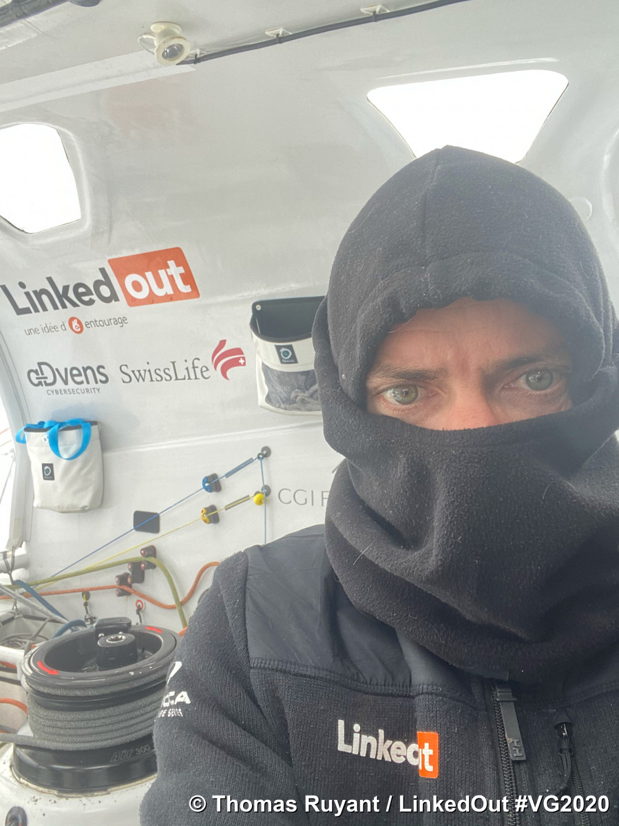 Thomas Ruyant, LinkedOut :"La mer est en train de se calmer alors qu’elle était grosse hier. Je descends vers le Sud-Est et le vent va encore tourner vers le Nord-Ouest, alors je vais aller à fond vers la ZEA avant d’empanner. Je vais essayer de passer le ap Horn en un seul bord…