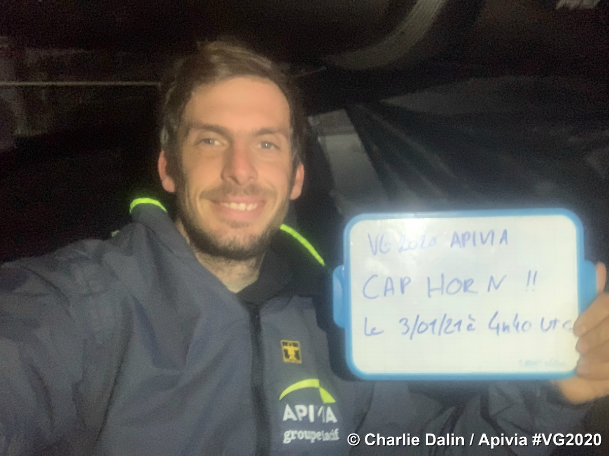 APIVIA est passé à 7 milles du promontoire rocheux. Dans la pénombre des hautes latitudes australes, son skipper a aperçu l’ombre du rocher et les lumières de la côte. Il a même pu échanger quelques mots avec le gardien de phare installé sur la base de l’île Horn. « C’est un bonheur tout simplement. Un moment fort. Je suis aussi heureux de ne plus avoir cette grosse mer qui nous accompagnait depuis plusieurs jours » déclarait ce dimanche matin le marin de 36 ans, engagé dans le premier tour du monde de sa vie. Perfectionniste et optimaliste - capacité à faire au mieux avec ce que l’on a - … c’est ainsi que Charlie se décrivait avant de quitter les Sables d’Olonne. Il faut certainement une forte dose de ces deux qualités - et quelques autres - pour exceller dans le Vendée Globe. De fait, Charlie doit composer depuis le 16 décembre avec un foil bâbord défaillant qui lui a coûté le leadership à l’entrée du Pacifique.