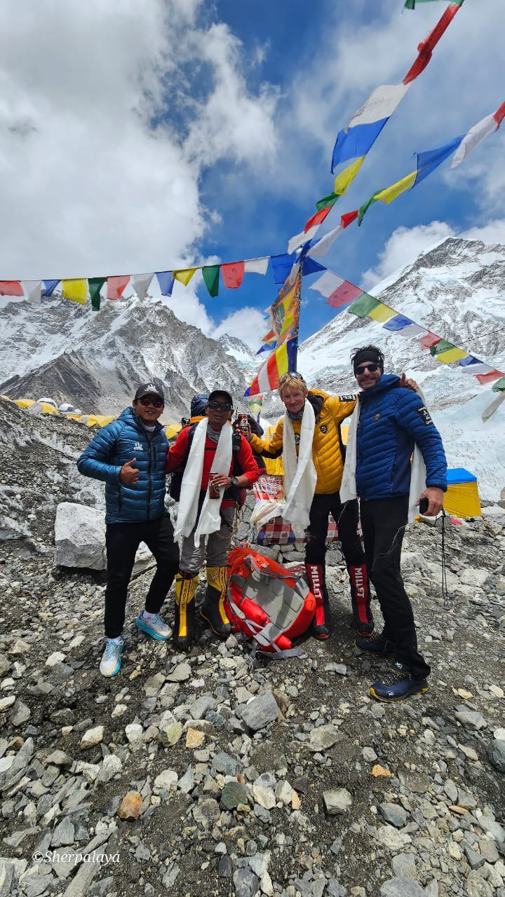 « Je suis très fier d’avoir accompli mon Double Everest, mon rêve pour Vaincre la mucoviscidose et pour démontrer que tout est possible dans la vie. C’est fait ! J’ai bouclé un Vendée Globe et j’ai gravi l’Everest. C’est beaucoup de bonheur et de sensations positives. Je suis plus fatigué qu’à l’arrivée d’un Vendée Globe car cette ascension a été très intense sur un temps court. Quand je suis arrivé au sommet, je me suis mis à regarder les étoiles et je me suis dit que jamais je ne les verrais d’aussi proches. J’ai eu une grosse émotion quand j’ai vu le sommet apparaître. Nous sommes arrivés de nuit au sommet. Tu ne vois rien à part un point blanc ! C’était une succession de plein de petits sommets. Tu montes, tu vois un truc et à un moment donné tu reconnais les drapeaux. Un grand moment ! Nous avons eu un vent énorme avec un froid totalement dingue. Quelles émotions ! Après le sommet, c’était le chao total avec un vent violent. Nous étions alors très pressés de redescendre parce que là-haut, on ne tient pas, on reste congelé. Ma bouteille d’oxygène était quasiment vide. Je n’en avais pas de rechange. Nous n’avions pas de temps à perdre.