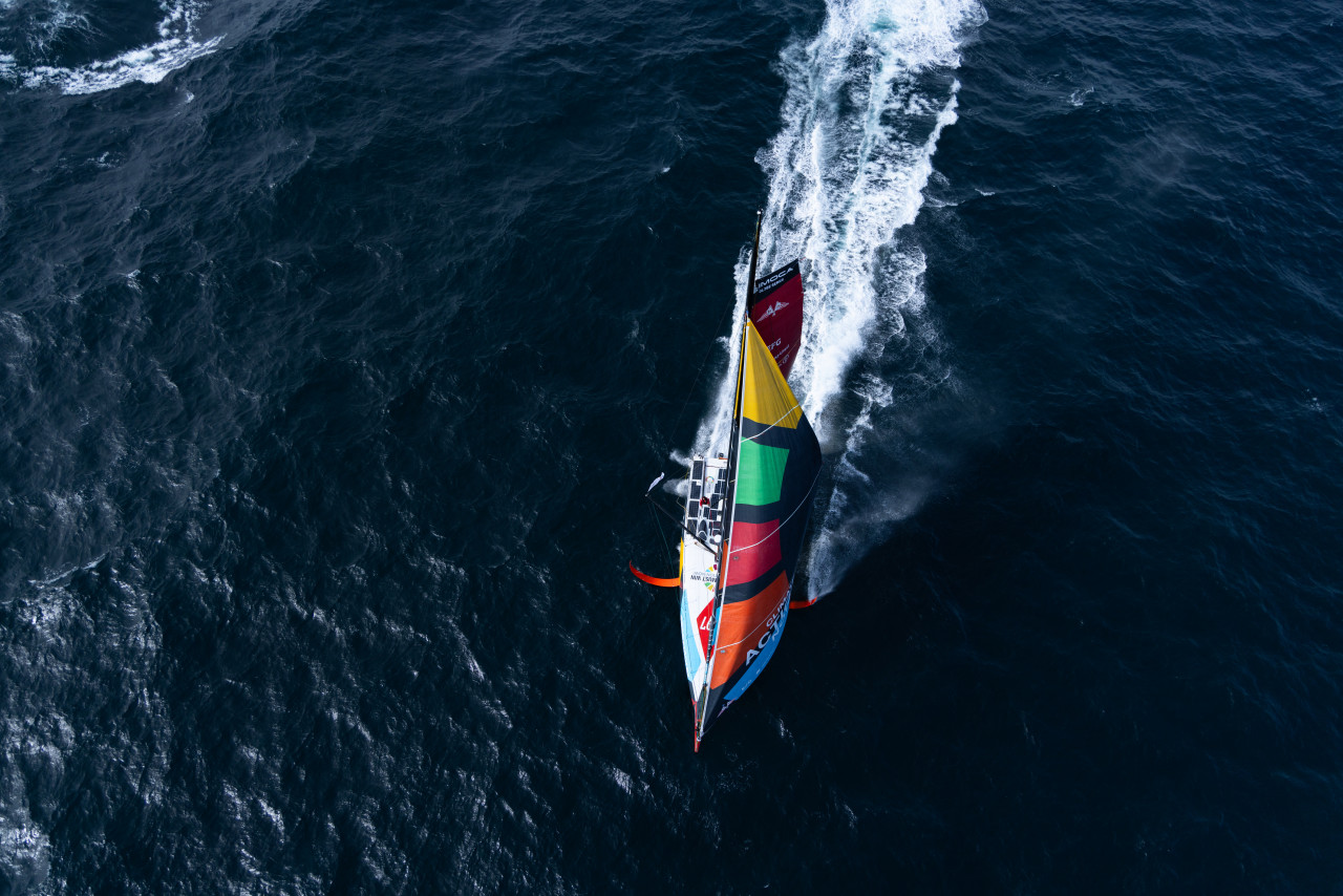 Dans ce contexte les marins doivent recourir aux basiques. Naviguer à l’ancienne, les yeux rivés vers les nuages, mais aussi multiplier les manœuvres et rester pleinement concentrés sur leurs réglages. Si ce n’est assurément pas de tout repos, ce n’est pas non plus idéal pour gagner rapidement des milles dans la bonne direction. La preuve, alors qu’ils terminent leur quatrième jour de mer, ils ont à peine avalé un tiers du parcours !