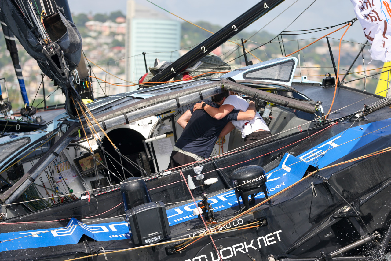 Et le suspense fut au rendez-vous puisque les quatre bateaux sont arrivés à Fort-de-France avec seulement un peu plus de 35 minutes d'écart ! Jérémie Beyou et Franck Cammas sur Charal, pénalisés par l’impossibilité d’utiliser une voile cruciale dans les alizés, se sont imposés en 4ème position. Un peu plus de 17 minutes plus tard, ce fut au tour d’une Sam Davies exaltée, avec son complice Jack Bouttell, de franchir la ligne sur Initiatives-Cœur 4.
