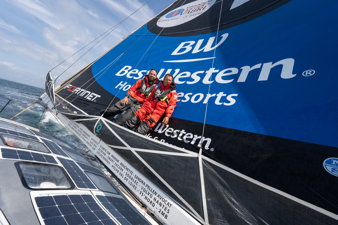 Trois tandems engagés en IMOCA se connaissent sur le bout des doigts pour avoir déjà partagé la saison 2019 en double avec une Transat Jacques Vabre à la clef. Yannick Bestaven et Roland Jourdain à bord de Maître CoQ IV, Jérémie Beyou et Christopher Pratt sur Charal (ils sont d’ailleurs les vainqueurs IMOCA du « Fastnet » 2019) et enfin Romain Attanasio et Sébastien Marsset qui repartent aussi ensemble, mais sur une nouvelle machine : le nouveau Fortinet-Best Western (ex-Seaexplorer-YC de Monaco de Boris Herrmann). « Il y avait plein de possibilités, le poste intéressait plusieurs skippers tout aussi talentueux qui avaient envie de naviguer sur ce bateau, mais j’avais déjà choisi Seb dès l’arrivée au Brésil il y a deux ans. Je lui avais dit que s’il voulait, on repartirait avec plaisir ensemble, » confie Romain. « Il m’a ensuite beaucoup aidé sur la préparation du Vendée Globe. Il a effectué un travail d’enfer avec l’équipe et quand il a fallu découvrir ce bateau, je voulais quelqu’un qui m’accompagne toute l’année. Et puis à bord, comme on se connait bien, on sait avant d’en arriver à l’énervement, quand il faut laisser l’autre tranquille ! »