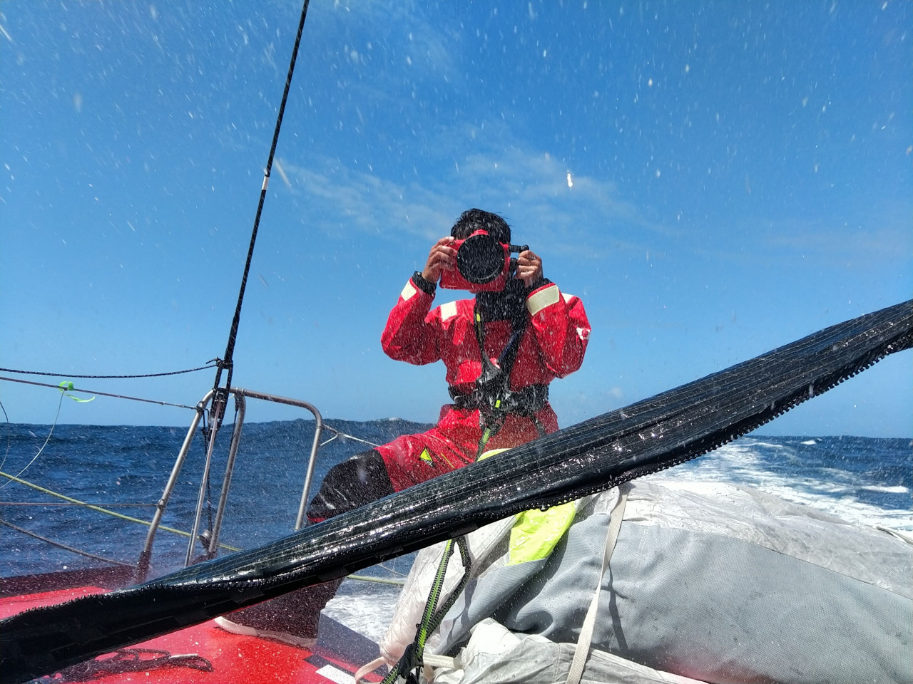 Gauthier Le Bec, membre du team Charal depuis trois ans, a déjà parcouru de nombreux milles à bord de l’IMOCA de Jérémie Beyou. Aux côtés du skipper, il capture chaque instant pour tenter de faire vivre au public la navigation au plus près. « Mon travail consiste à rapporter des images en mer, j’ai l’occasion de partir en navigation offshore avec l’équipe. L’idée est de prendre des photos de l’intérieur du bateau pour montrer les manœuvres et la vie à bord et des photos de l’extérieur du bateau avec un drone, pour la communication mais aussi pour la performance, notamment pour observer les voiles, » confie le Lorientais de 27 ans.