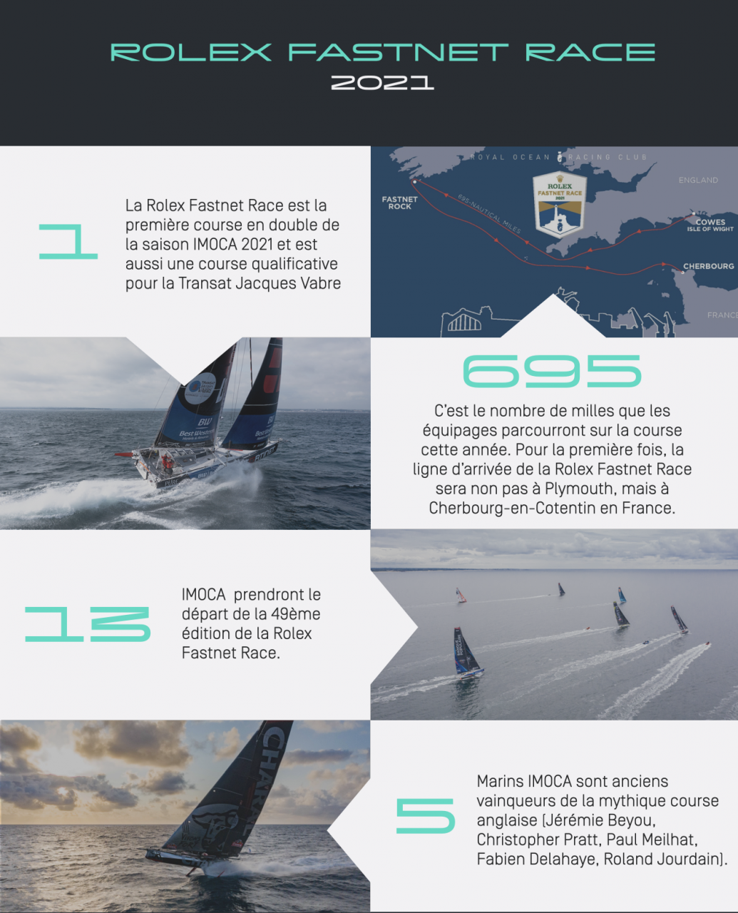Le départ de la course sera retransmis internationalement et sur le site officiel de la Rolex Fastnet, sur la chaîne YouTube du Royal Ocean Racing Club (RORC) et sur la page Facebook du RORC, ainsi que sur les réseaux sociaux de la ville de Cherbourg et ceux des IMOCA Globe Series !