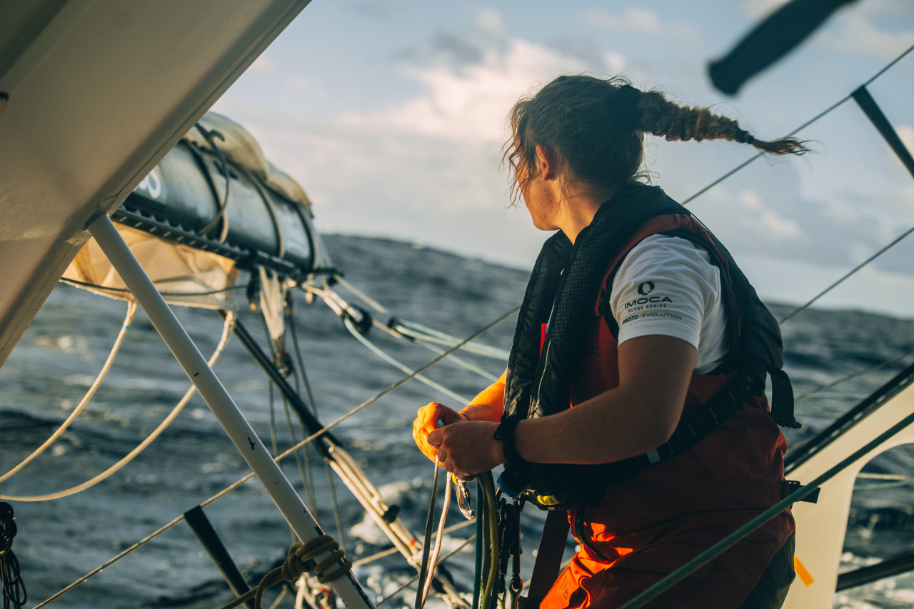 L’objectif pour Clarisse Crémer sur cette course est de reprendre confiance. Mis à part le problème de son pilote automatique, cette course s'avère jusqu'à présent être une expérience heureuse pour elle, après sa fin de course retardée lors de The Transat CIC, suite à de graves dommages structurels réparés aux Açores.