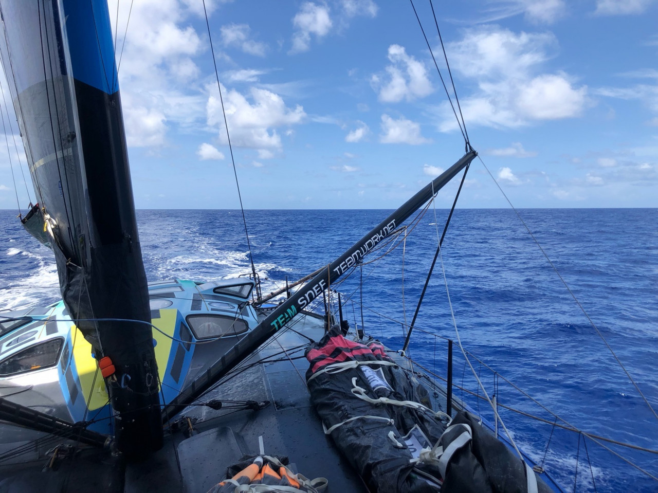 Naviguant dans des conditions météorologiques radicalement différentes de celles des bateaux derrière eux, ils ont déjà creusé un écart d'environ 300 milles nautiques avec le peloton. À présent, Charlie Dalin au sud et Boris Herrmann plus au nord sont séparés par environ 230 milles nautiques, mais les deux skippers se disputent la première place, étant presque à égale distance du but, encore à plus de 1 600 milles devant eux.